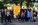 iIlluminazione di colore arancione della rotonda stradale del Comune di Andora